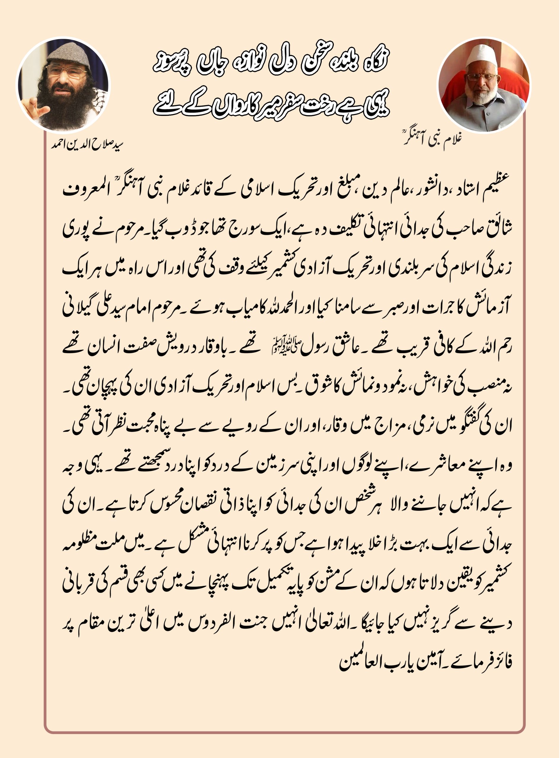 عزم و ہمت کے پیکر شہید غلام رسول ڈارؒ